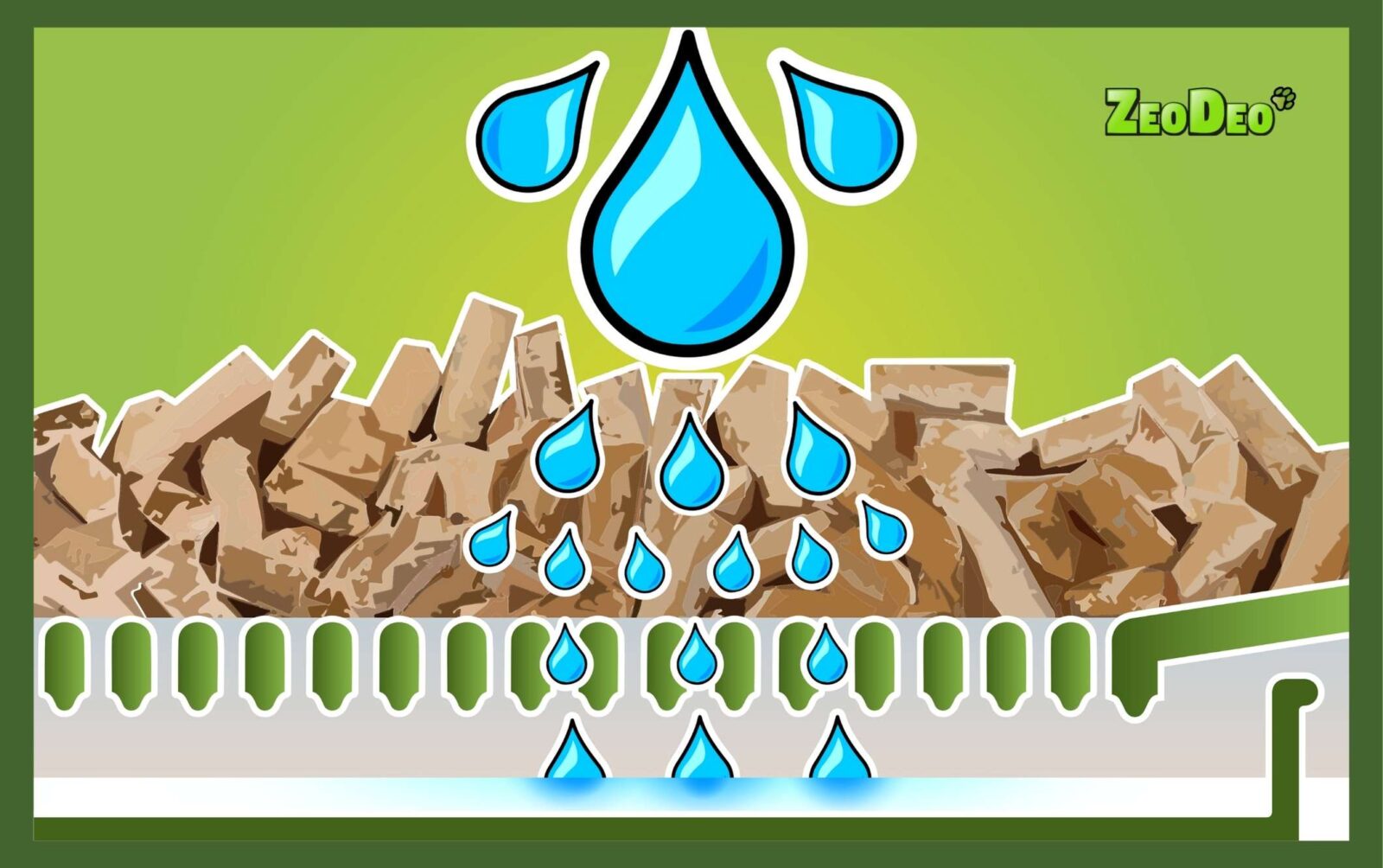 Special absorbent pads take care of all liquids, whilst dust-free zeolite pellets naturally manage odours and moisture.